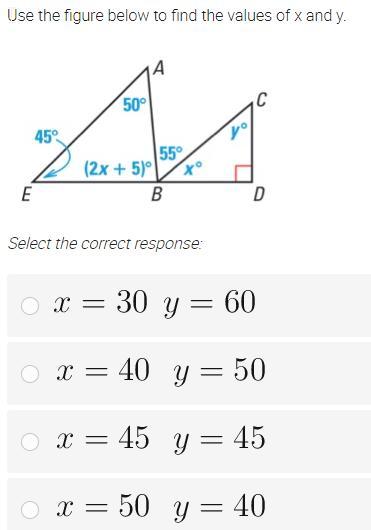 40°+90°(right angle)=130°, so 180 -130 would equal 50.