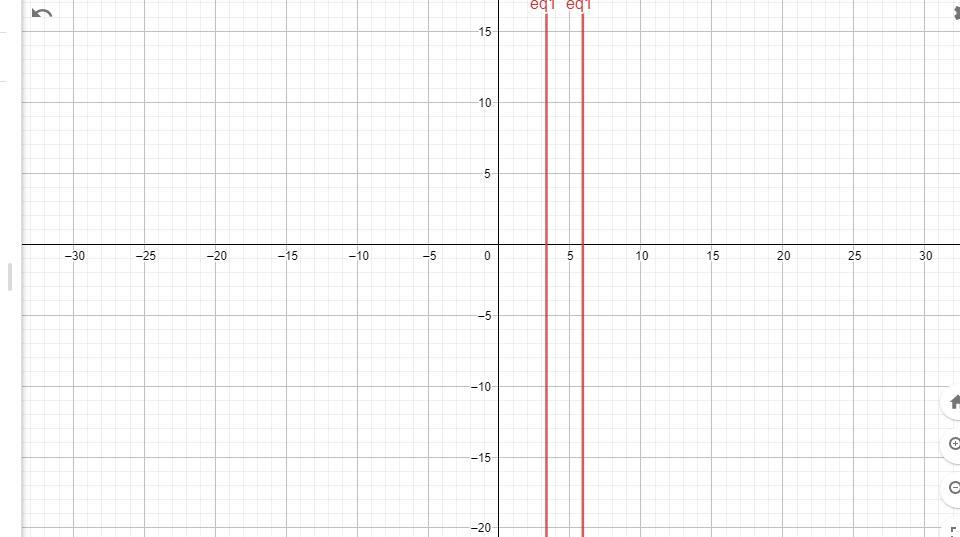 The graphical solution of the equations is approximately x = 3 and x = 6