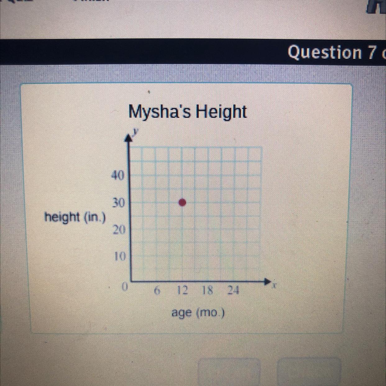 It would be B. She is 30 inches in height (y-axis) and she is 1 year old, or 12 months (x-axis). Hope this helped :)