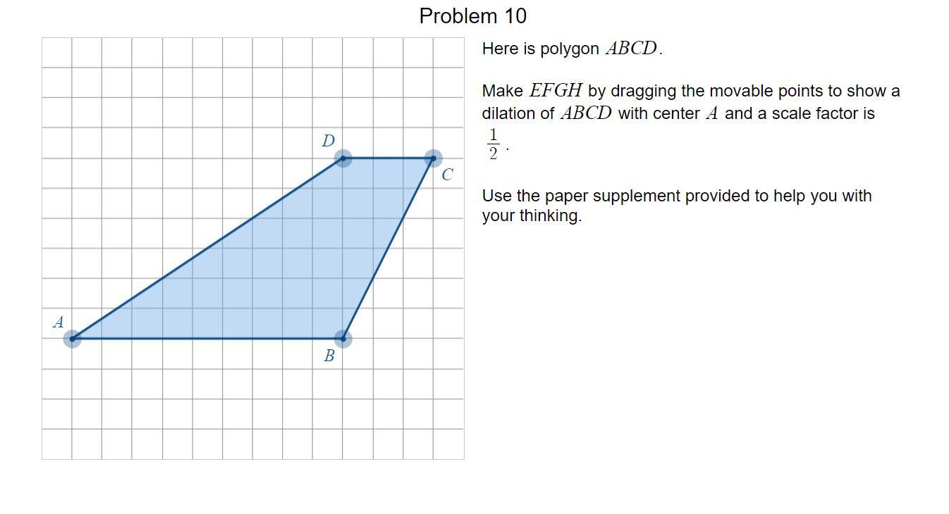 To go from D to C, we move 3 spaces. This cuts in half (again because of the scale factor) to get 3/2 = 1.5 spaces which is the distance from D' to C', aka from H to G.