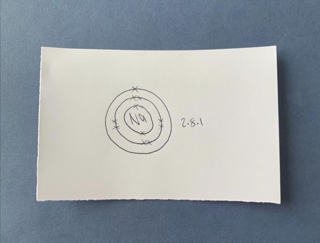 An atom of sodium has 11 electrons. Make a sketch of a sodium atom, showing how many electrons it has at each energy level. Infe