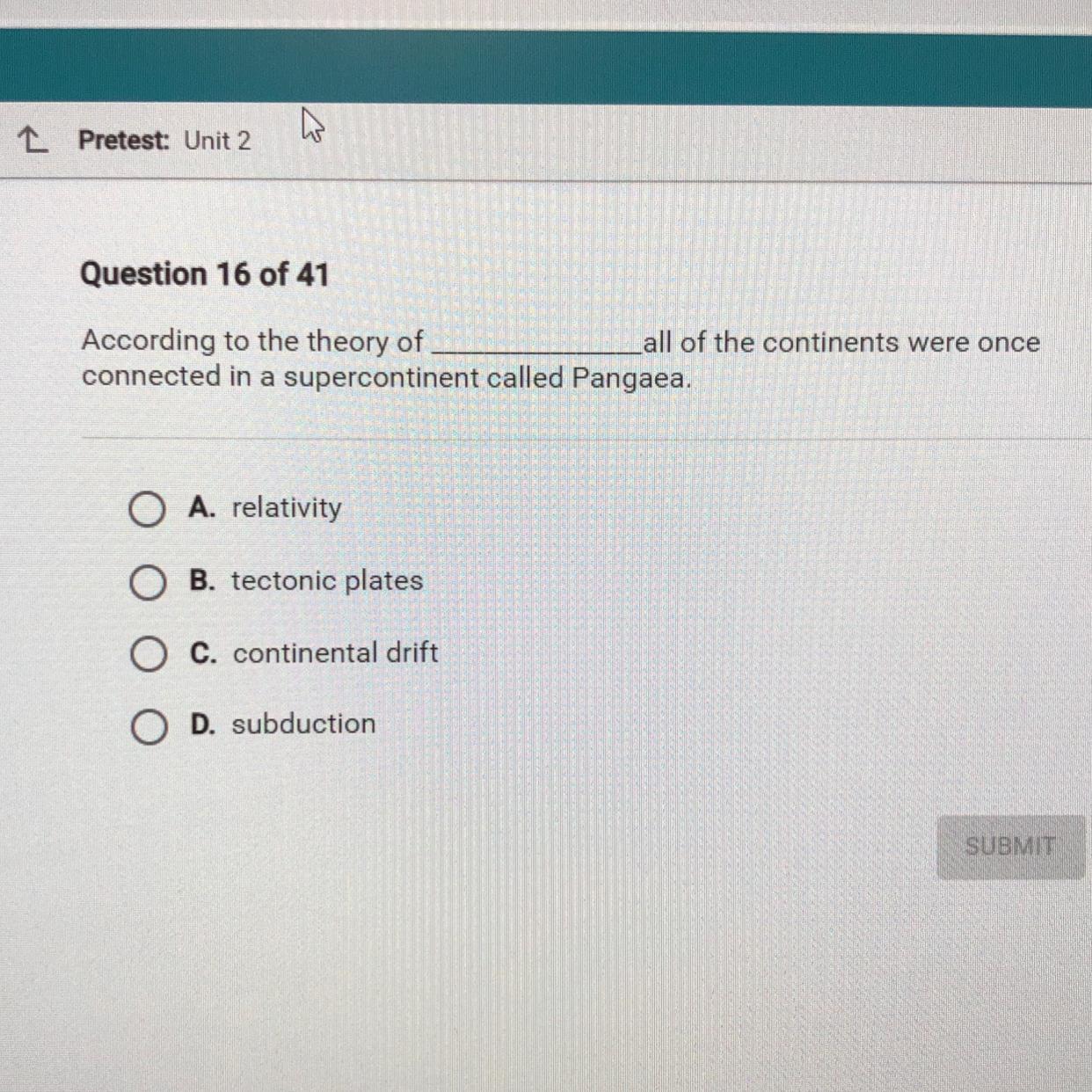 According to the theory of ________ all of the continents were once