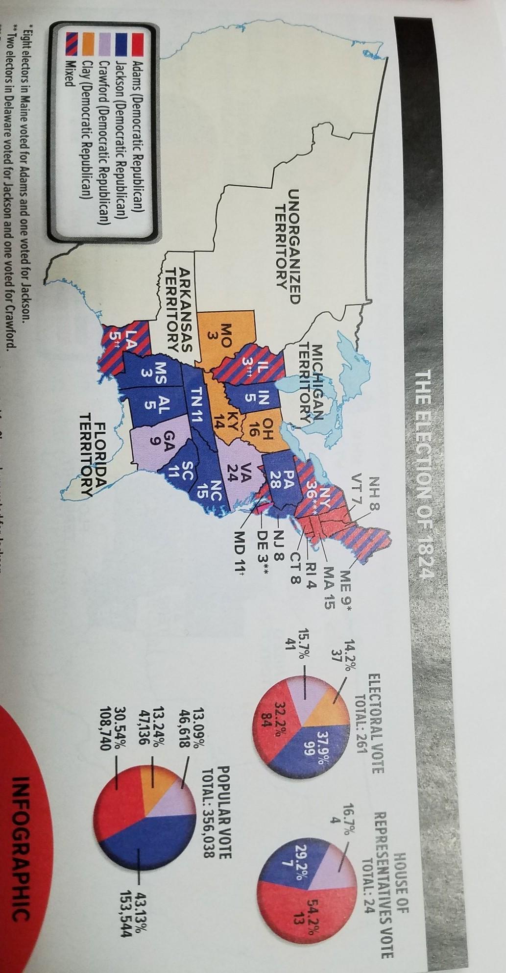 Adams won New England, Jackson and Adams split the mid-Atlantic states, Jackson and Clay split the Western states, and Jackson and Crawford split the Southern states. Jackson finished with a plurality of the electoral and popular vote, while the other three candidates each finished with a significant share of the votes. Clay, who had finished fourth, was eliminated. Because he shared many of Adams's positions on the major issues, he lent him his support, allowing Adams to win the contingent election on the first ballot.