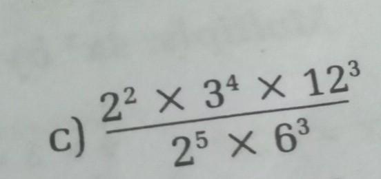 Answer: 81 Explanation: [(2^2) (3^4) (12^3)]/[(2^5) (6^3)] Whenever you have a number that can be separated into parts you can and give the same exponent: [(2^2) (3^4) (2^3x2^3x3^3)]/[(2^5)(2^3x3^3)] Whenever you multiply two terms with the same base, you can add the exponents: =[(2^8)(3^7)]/[(2^8)(3^3)] Take both 2^8’s out =(3^7)/(3^3) Whenever you have two exponents with the same base divided you just subtract the exponents: =3^4 =81 The answer is 81