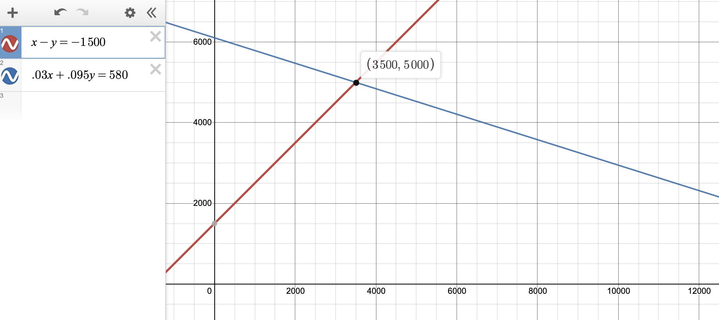 0.03x +0.095y = 580 . . . . . total tax paid was 580