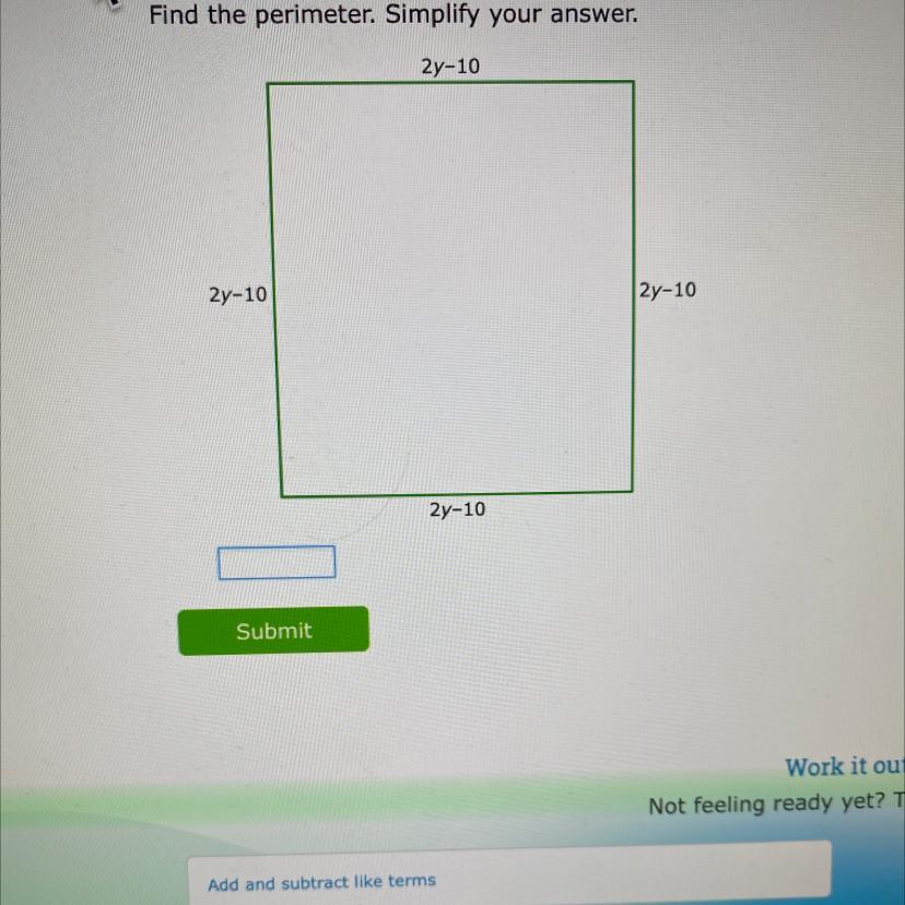 (2y - 10) + (2y - 10) + (2y - 10) + (2y - 10)