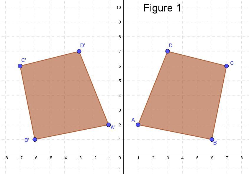 which means we change the sign of the x coordinate, but keep the y coordinate the same. For example, a point like A(1,2) moves to A ' (-1,2). The other points are handled in a similar fashion.