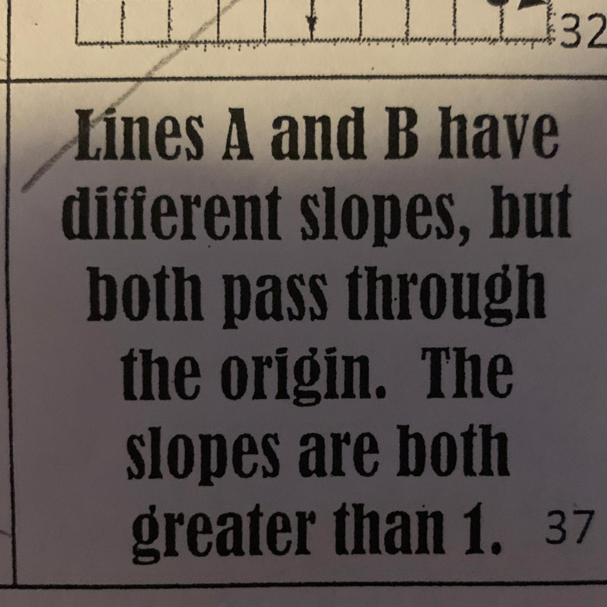 Perpendicular lines need slopes that multiply to -1, meaning one of them must be negative. This is not possible if both are greater than 1, making them positive. The lines cannot be perpendicular.
