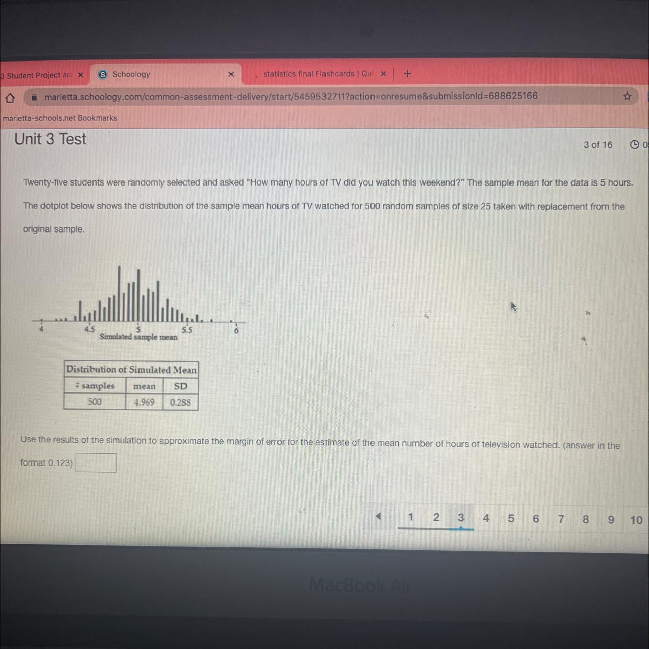Use the results of the simulation to approximate the margin of error for the estimate of the mean number of hours of television watched. (answer in the