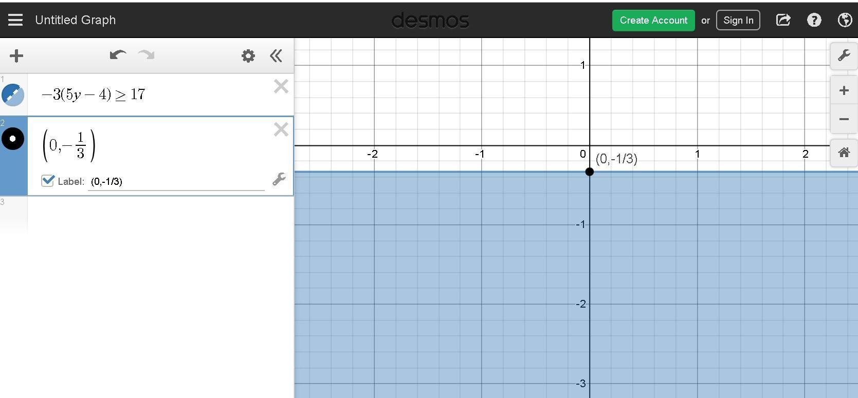 In a number line the solution is the shaded area down of y=-1/3 (close circle)