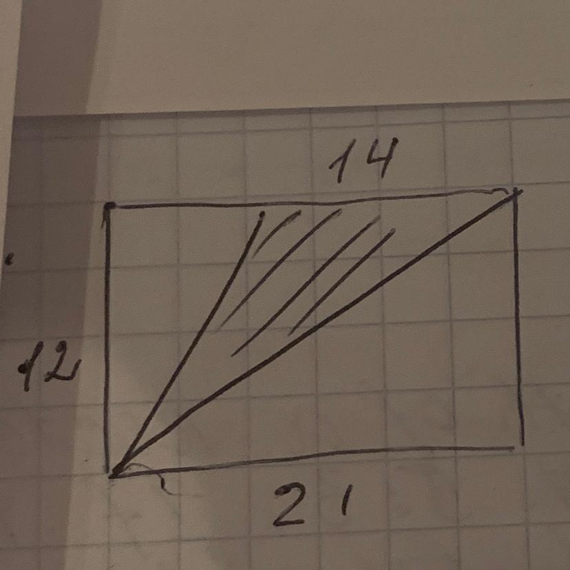 Now, find the area of the unshaded side of the other triangle. As the length of side C is 21 and the shape is a rectangle, side A is also 21. We need to calculate the amount is unshaded on this side so: