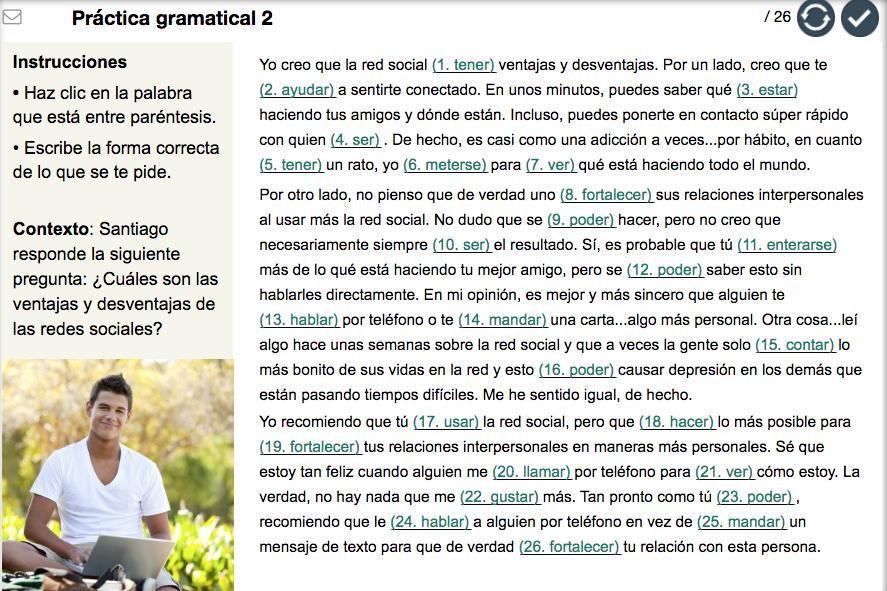 1.Tiene 2. Ayuda 3.estan 4.sea 5.tienes 6.me meto or meter 7.ver 8.fortalece 9.pueda or puede 10.sea 11.te enteres o just enteres 12. Puede 13.hable 14.mande 15.cuenta 16.puede 17.uses 18.hagas 19.fortalecer 20.llama 21. Ver 22.guste 23.puedas 24.hable 25.mandar 26.fortalescas If you have any questions let me know