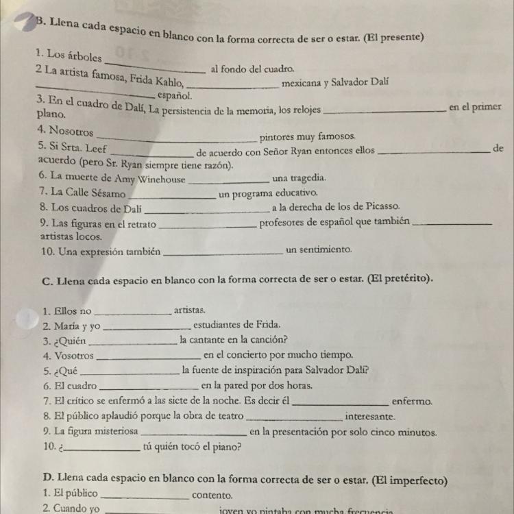 B. Fill in each blank with the correct way of being or being. (The present)