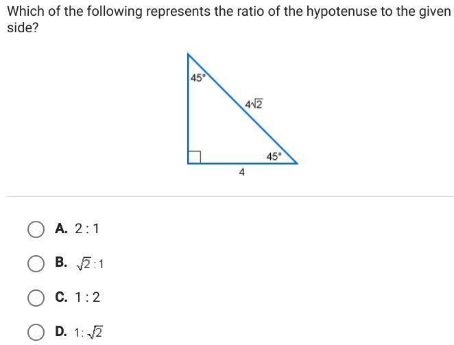 Which of the following represents the ratio of the hypotenuse to the given side?