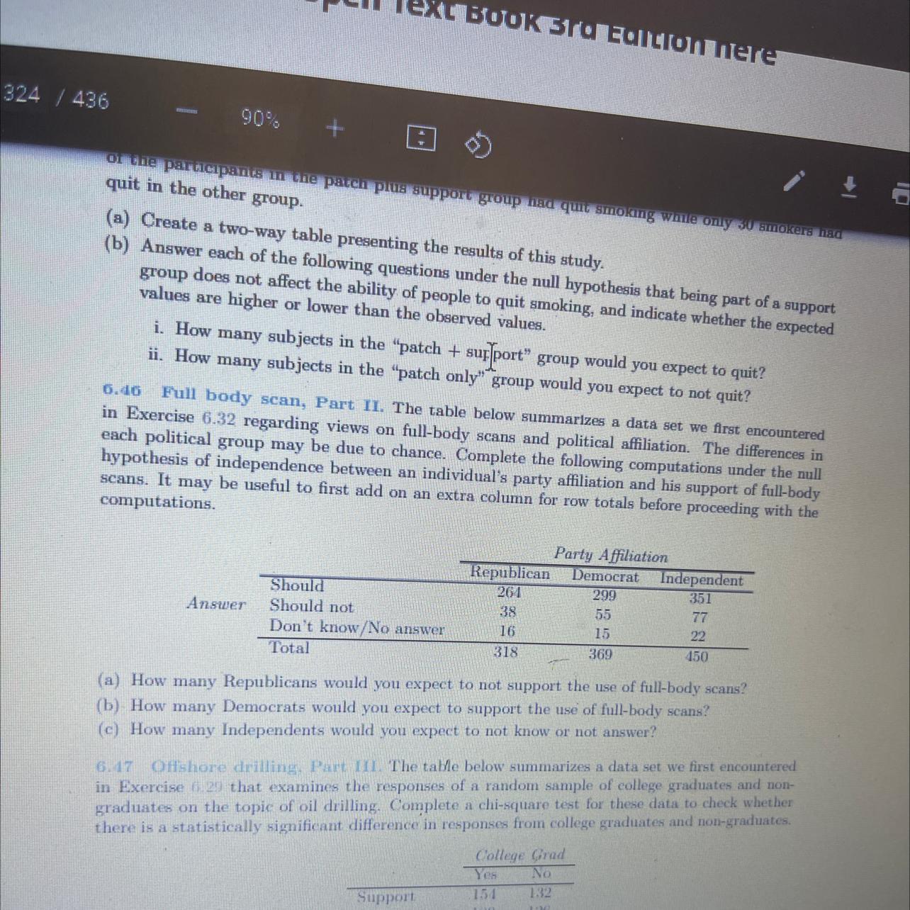 Using the independence between an individual's party affiliation and his support of full-body scans, it is found that:
