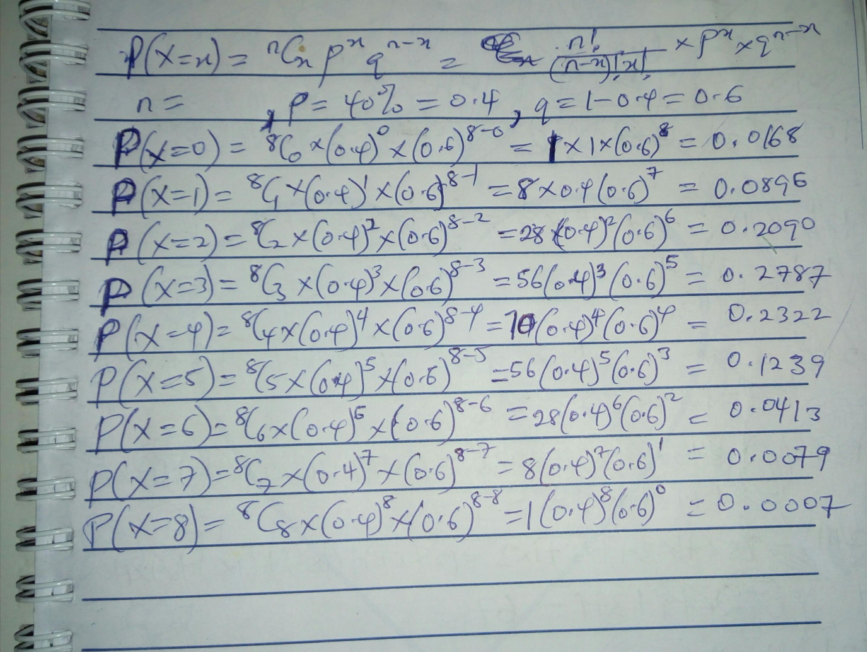P(X=x) = n!/[(n-x)!x!] × p^x × q^(n-x)