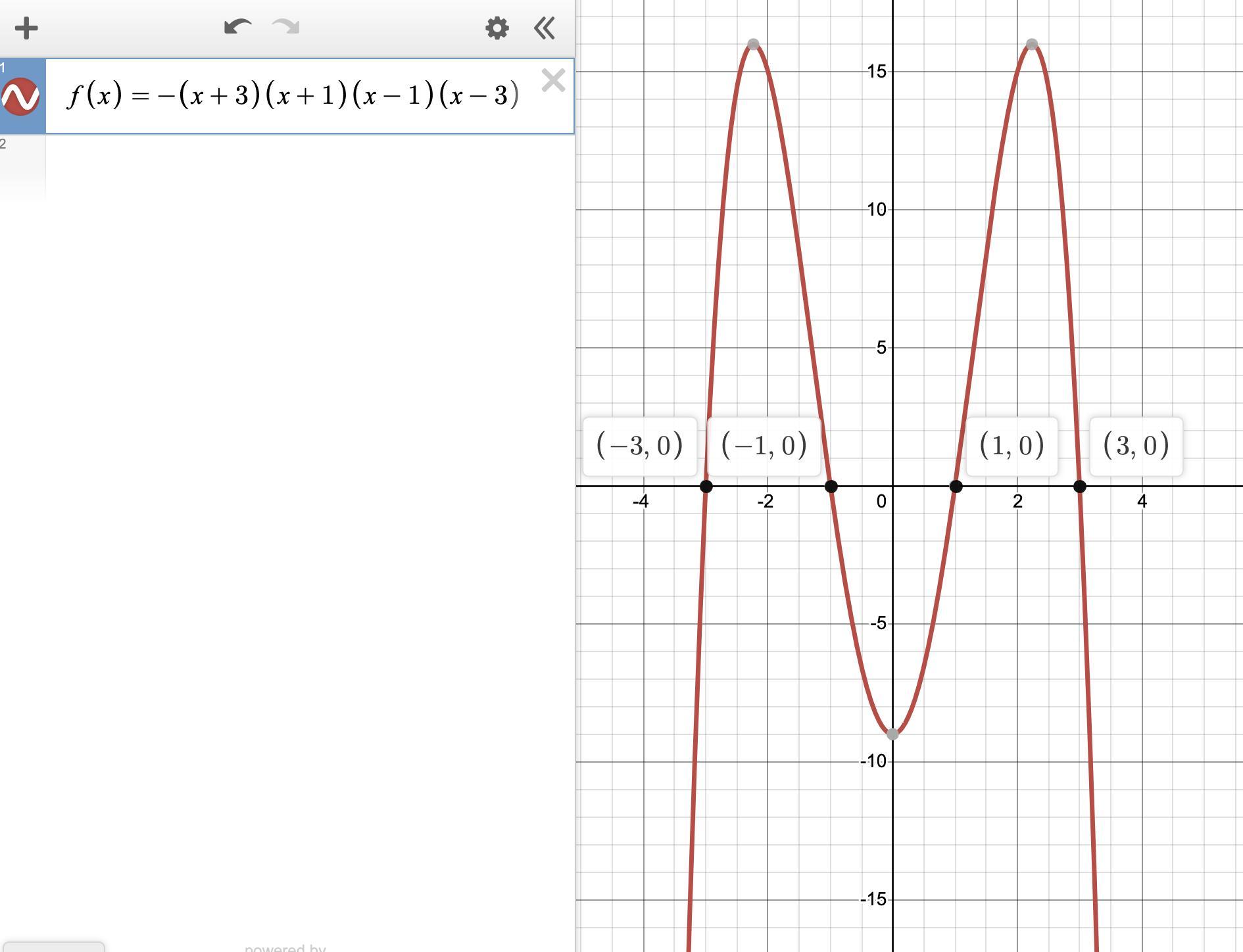 f(x) = -(x +3)(x +1)(x -1)(x -3)