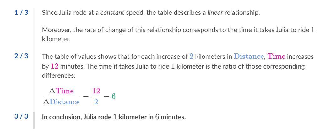 - For a distance of 8 km, she takes 58 minutes.