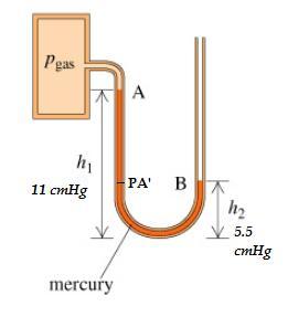 PA = P gas, PB = Patmos = 1 atm = 101325 Pa
