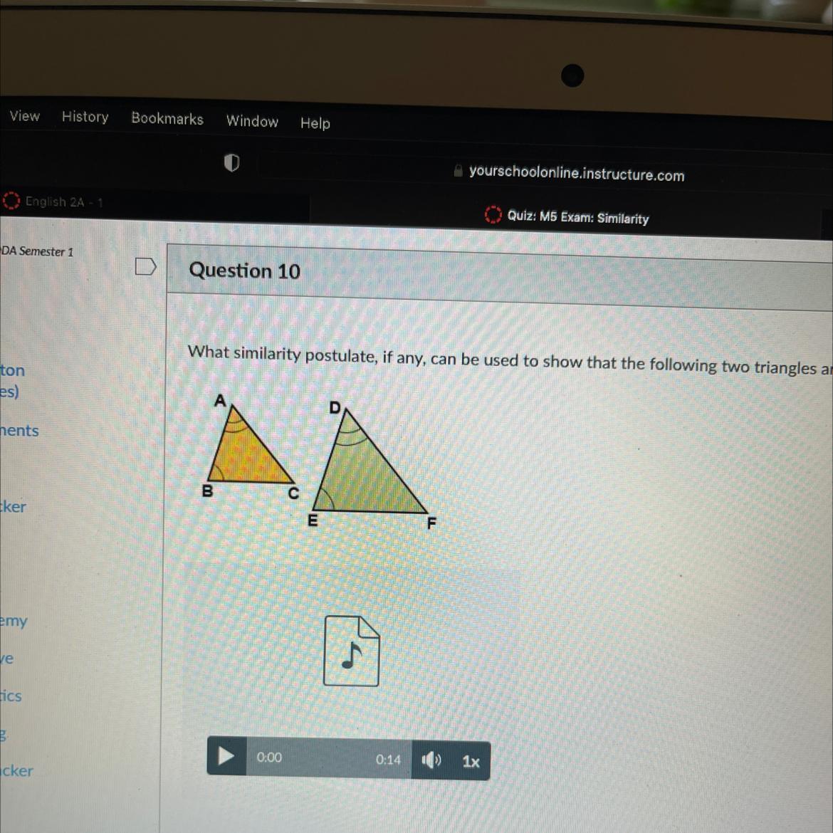 What similarity postulate, if any, can be used to show that the following two triangles are similar?
