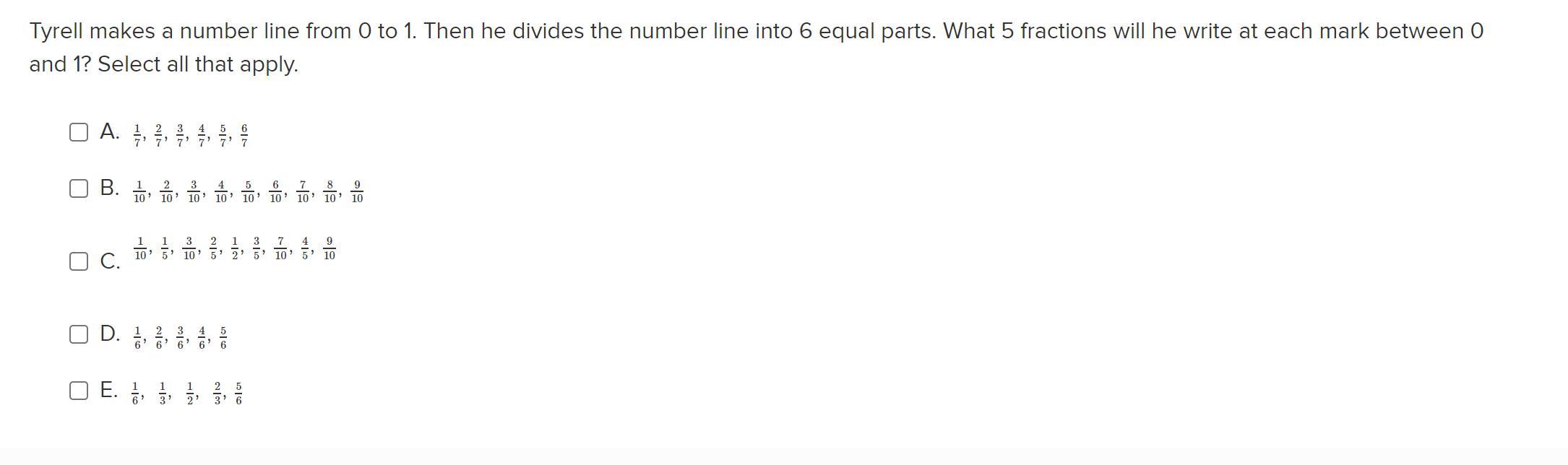 - 1/6, 2/6, 3/6, 4/6 and 5/6