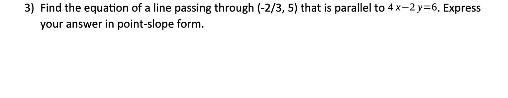 Find the equation of a line passing through (-2/3, 5) that is parallel to 4x-2y=6. Express your answer in point-slope form.