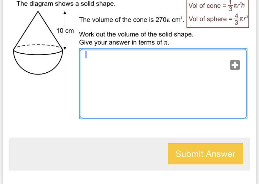 πr²h = 270π ( multiply both sides by 3 to clear the fraction )