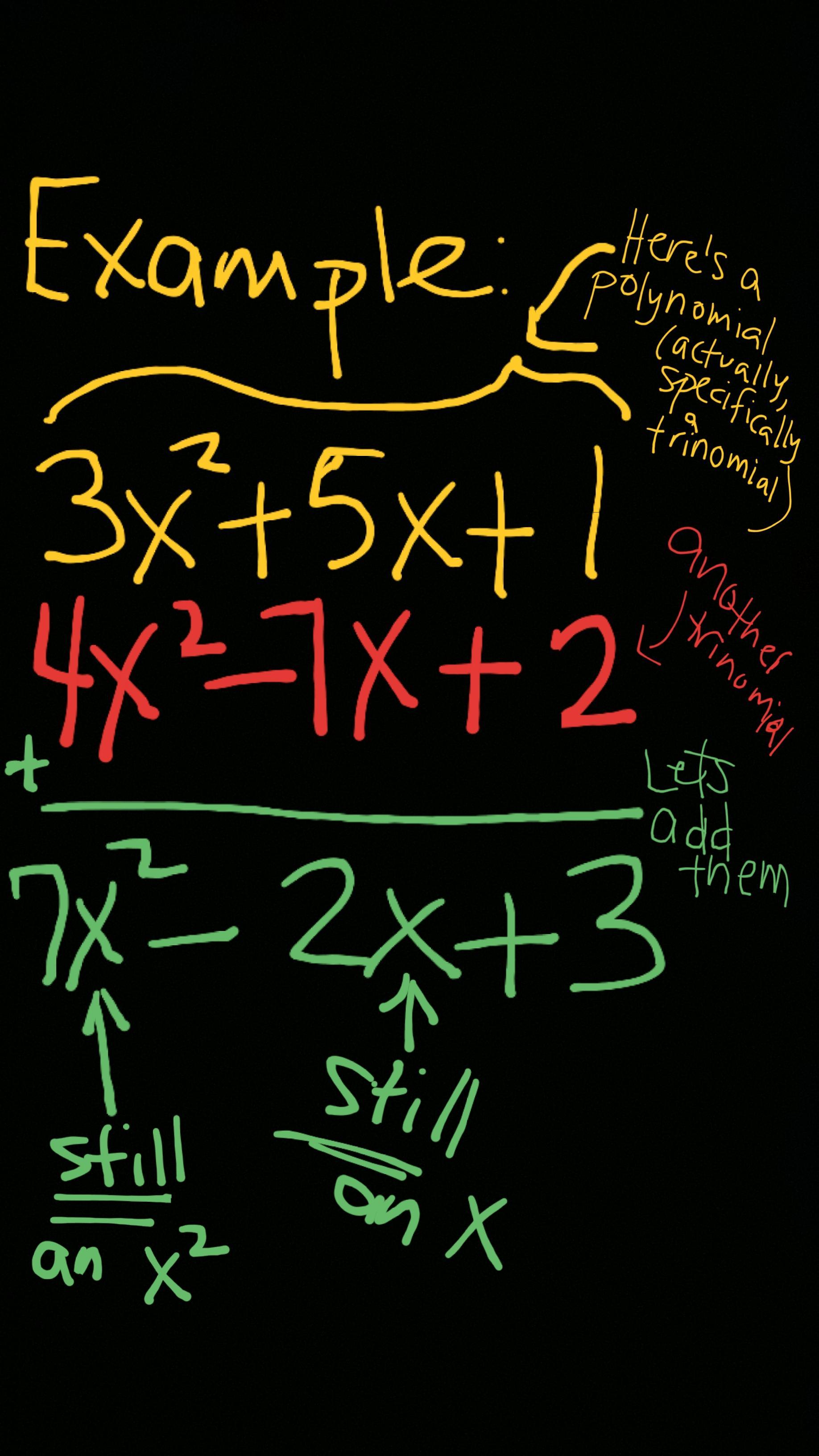 When we add polynomials, we ADD the coefficients but keep the VARIABLES the same.