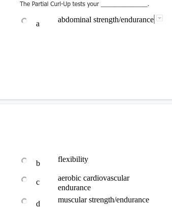 Answer:) The curl-up test measures abdominal strength and endurance, which is important in back support and core stability....