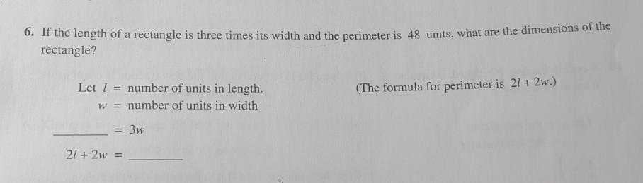 width is therefore 6units and length 3w = 18units