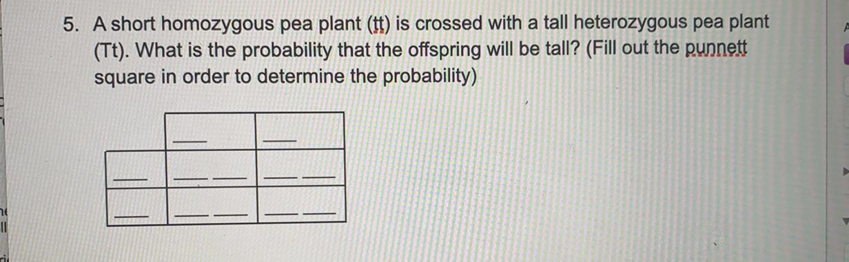 The resulting punnet square shows that only Rr and rr genotypes are possible, at a ratio of 50:50 (or 1:1). Therefore, the genotype frequency of Rr is 50%, and rr is 50% in the F1 generation. This can also be written as 0.5. It is not possible to get a red plant, as the genotype RR can not come from this cross