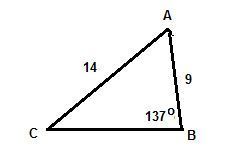 sin(C) = (9/14)*sin(137°) = 0.4384