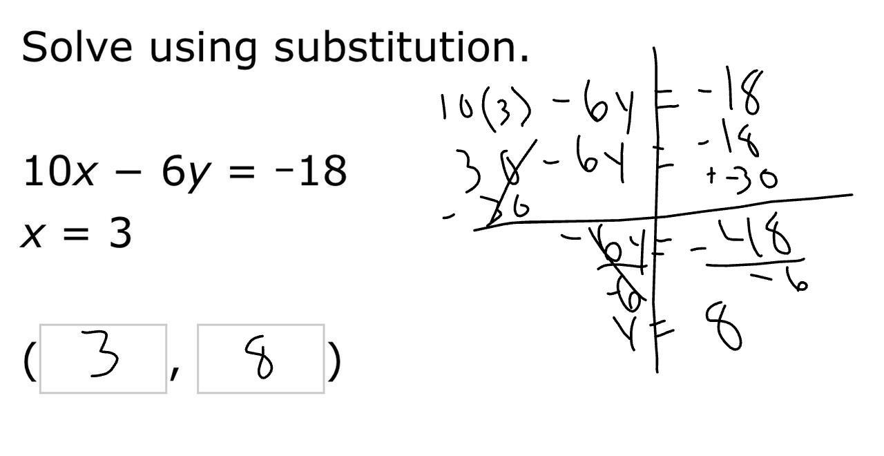 Step 1: Substitute 3 for x. We get 10(3) - 6y = -18.