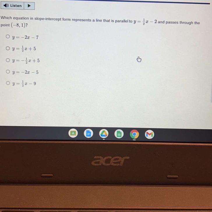 We know the equation for slope-intercept form is y = mx + b, where m is the slope and b is the y-intercept. Since we have the coordinates of one point on this line and the slope, we can substitute that in and find b first: