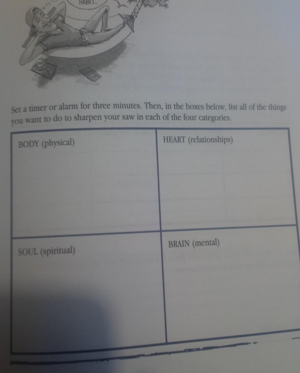 HEART- Learn to be more open and how to express your feelings more freely. some people aree emotionally unavaiable and dont even know it some people are over expressive and sometimes do a little to much so learn the median.