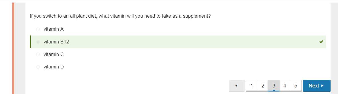 If you switch to an all plant diet, what vitamin will you need to take as a supplement? vitamin A,vitamin B12, vitamin C, vitami