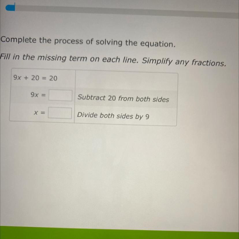 9x + 20 - 20 = 20 -20 .......subtract 20 from both sides