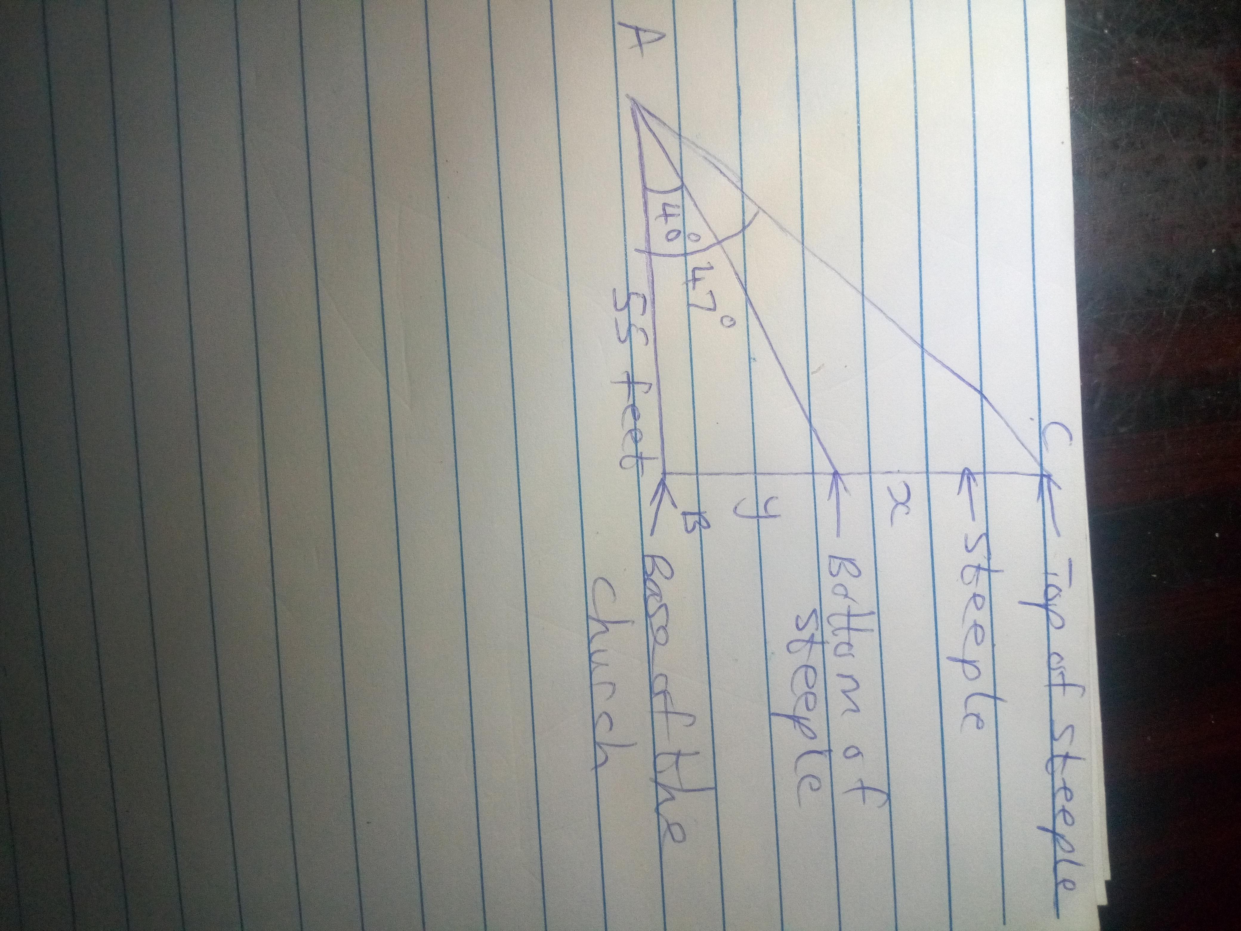 Let y represent the height from the base of the church to the bottom of the steeple.