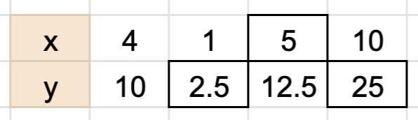 The second row is 10/4 = 2.5 times the first.