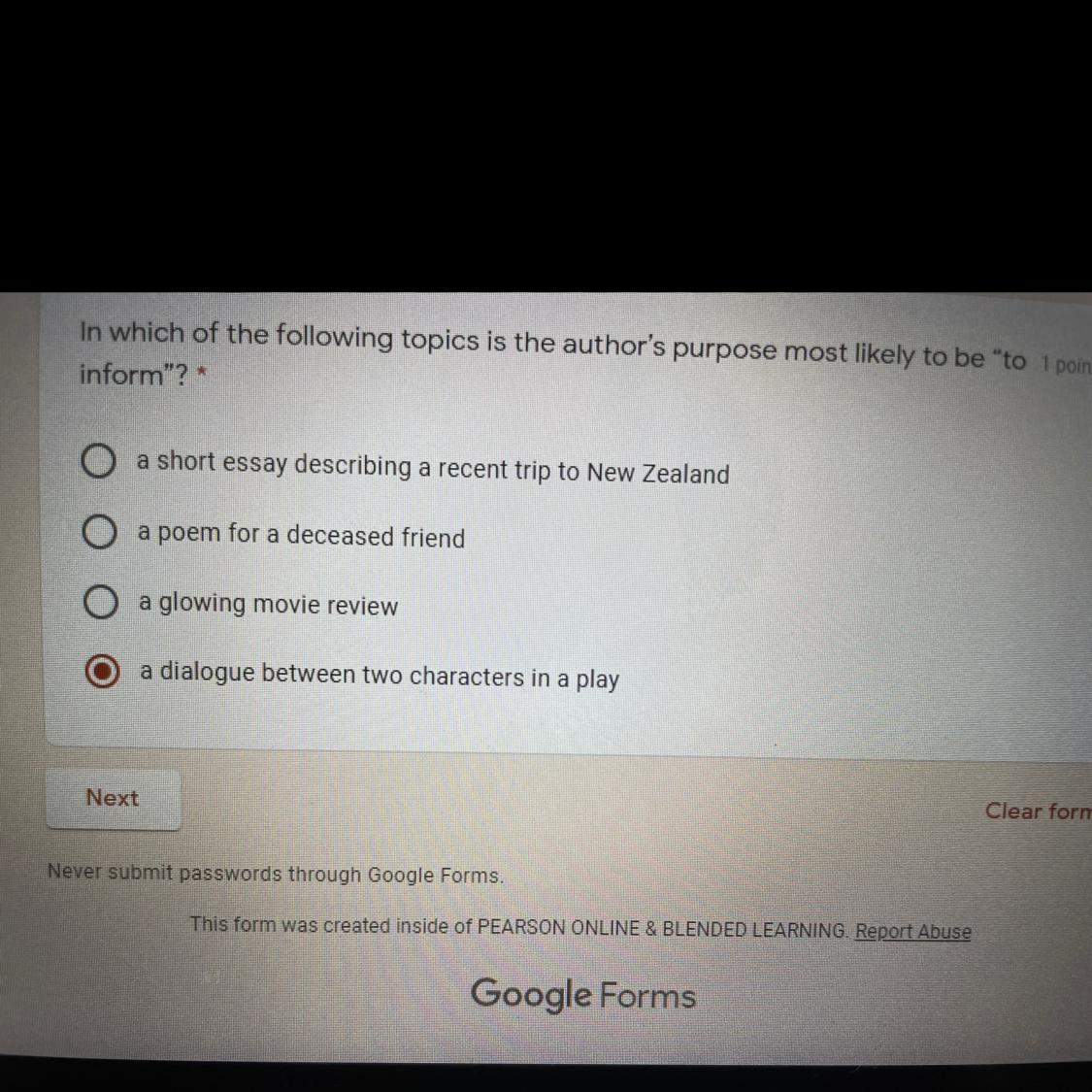 Can you please provide a full picture of the passage? it's kinda cropped on the sides, I tried reading it despite the issue and I believe the answer might be 3