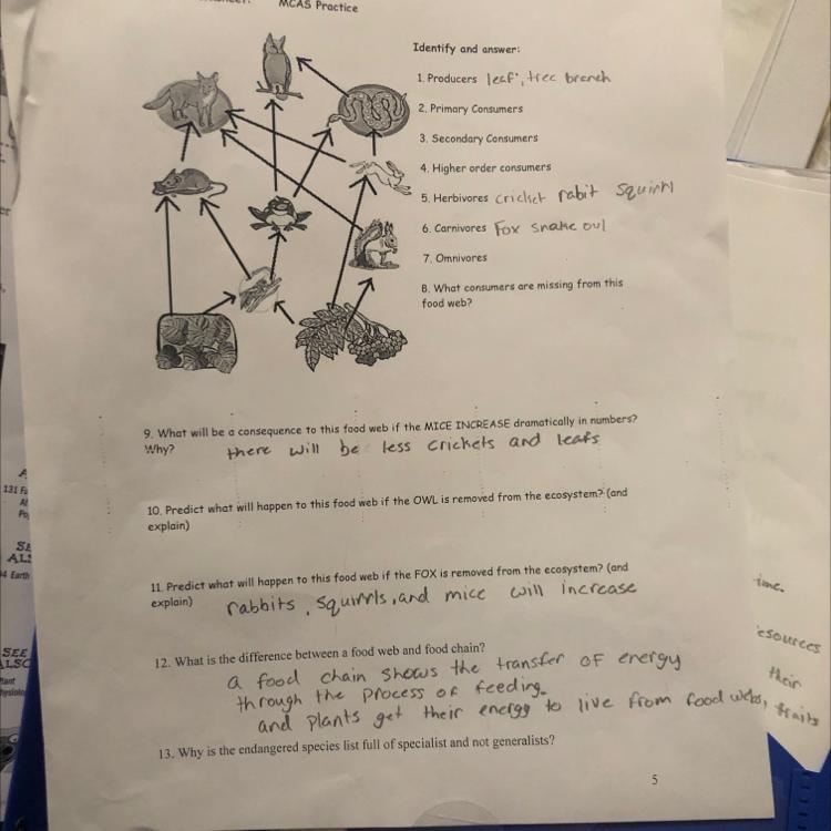 Secondary consumers are carnivores/omnivores, animals that eat other animals such as foxes, snakes, and owls.
