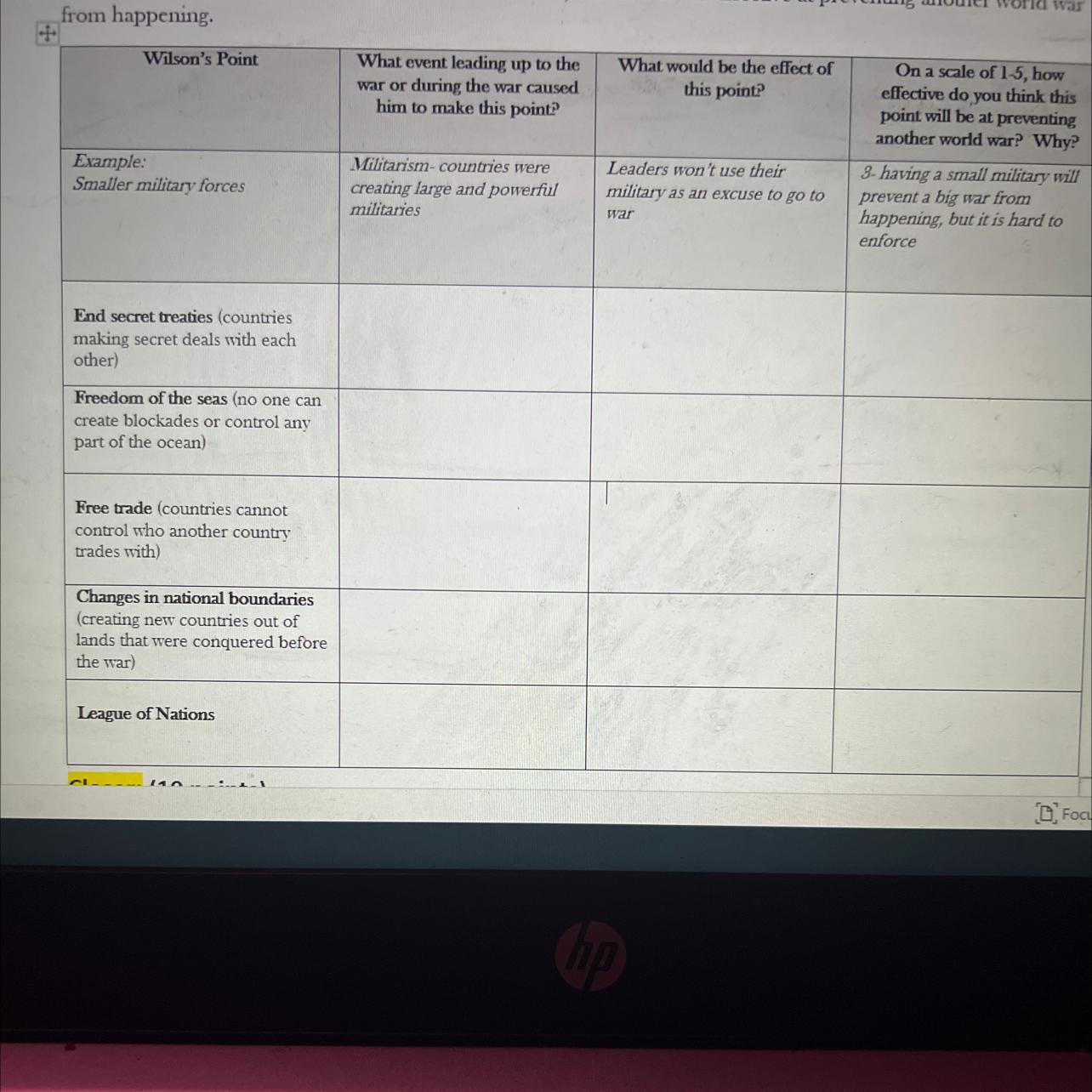 Directions: For each part of Wilson's Fourteen Points, decide if it was effective at preventing another world war from happening