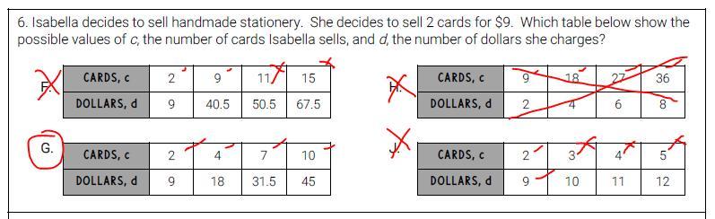 try doing the ratio and proportion on the other table and the number of cards DO NOT match with the amount. (see attached)