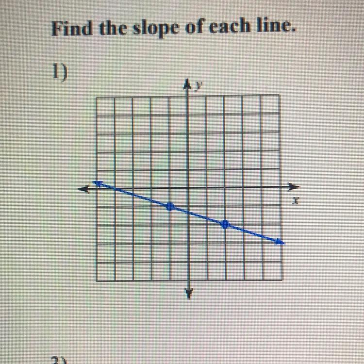 There are two easy ways you can find the slope. The first one is using the rise over run method which is to first count how much you need to go up or down to get to the other point, and then how much you need to go forward. In this case you go down one, and forward three. This means its -1/3. You can also use the slope formula which uses the coordinates of each point. I attached it to this answer. (m representing slope)