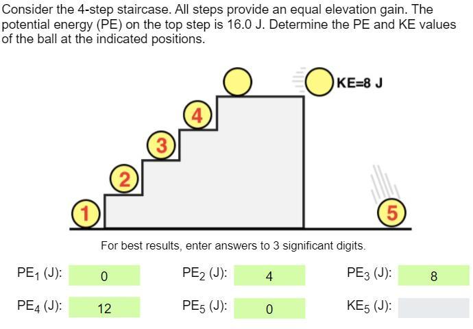 Potential energy, PE = 0, 4, 8 and 12 at level 1, 2, 3, 4 respectively.