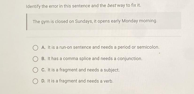 Identify the error in this sentence and the best way to fix it e