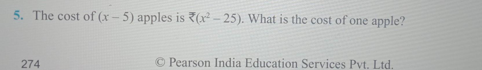 The cost of (X -5) apples is rupees(x2-25).What is the cost of one apple​