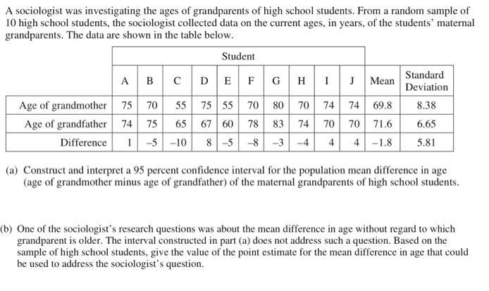 (b) The age difference is calculated as the age of grand mother minus age of grand father. the point of estimate for the mean difference is as follows: