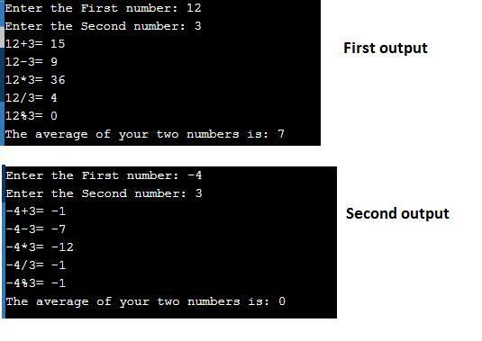 System.out.println("The average of your two numbers is: "+(ax1+ax2)/2);//calculating average