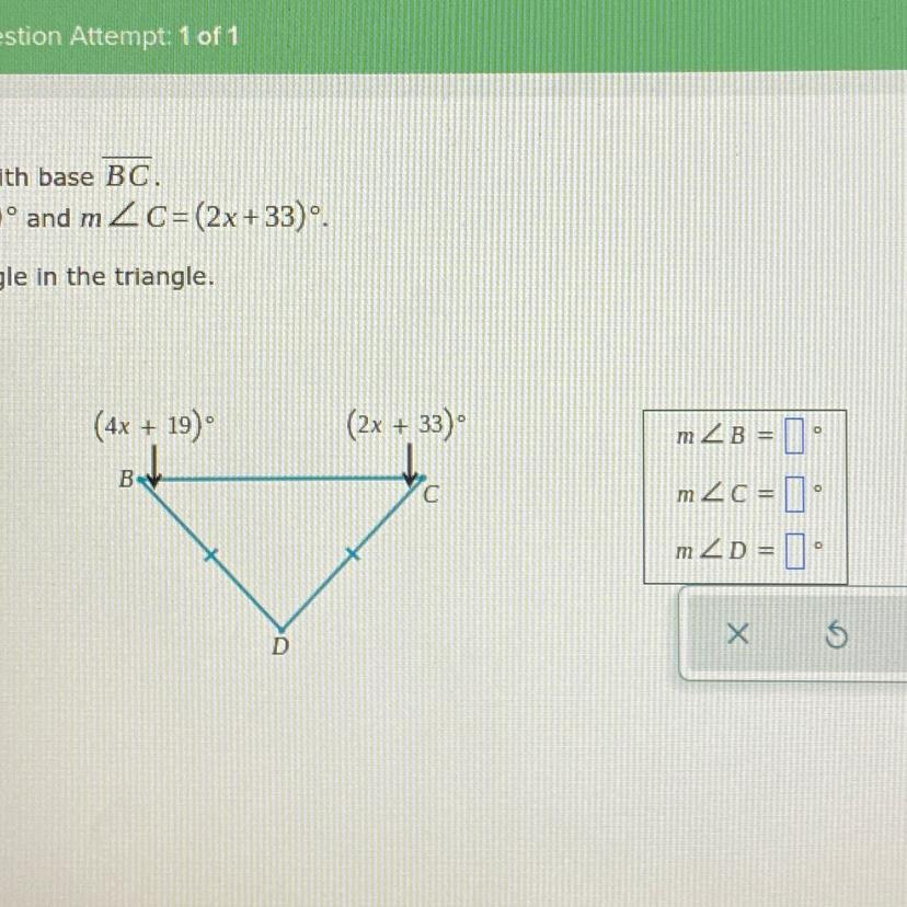 Use this x value to find each angle shown below